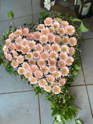 Ob Trauerschalen, Sarg oder Urnenschmuck, gesteckte Herzen oder andere Formen, Kränze und vieles mehr.